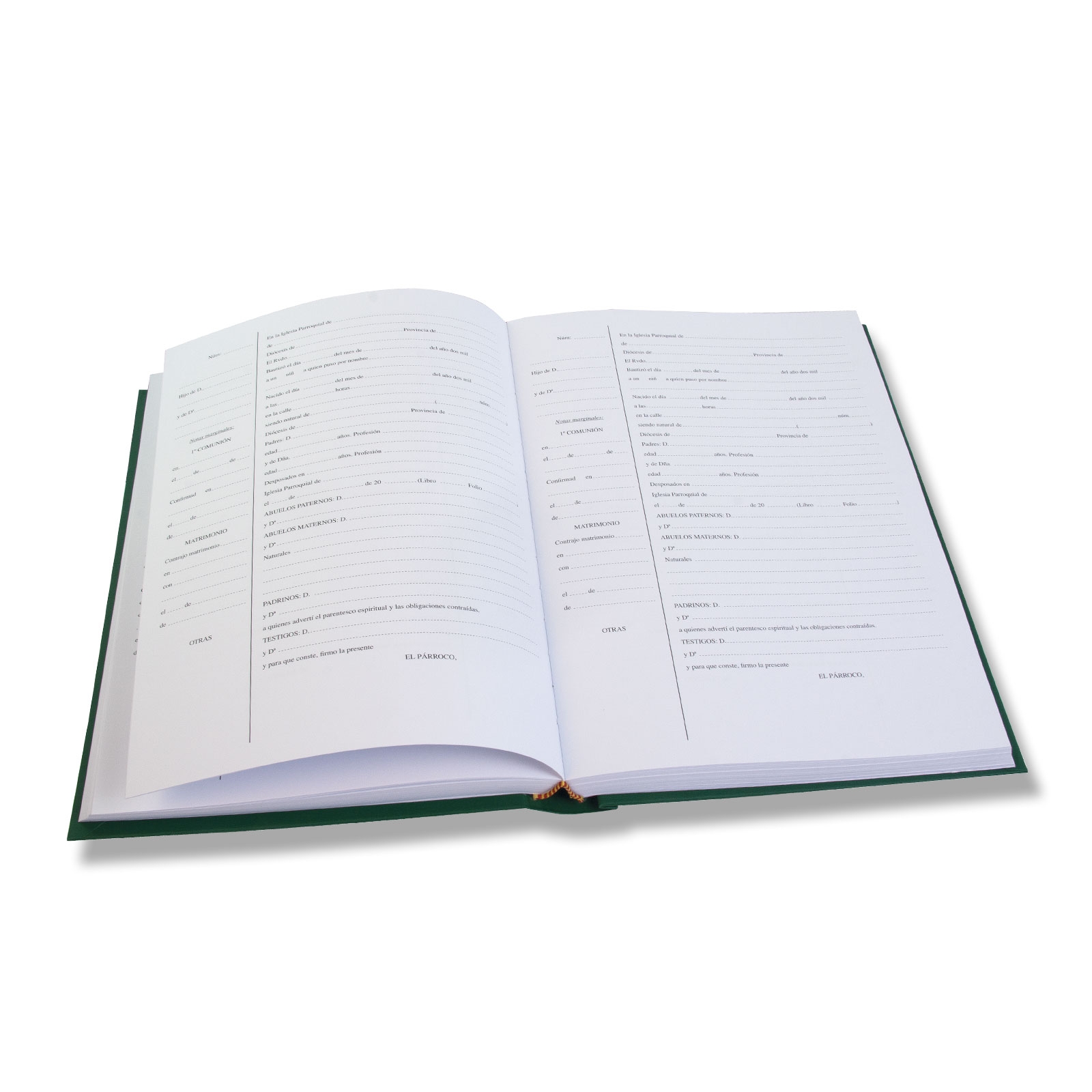 Libro registro para inscribir a los bautizados en su parroquia, encuadernación de lujo, 400 páginas más índice, papel de 120 gr de alta calidad, duradero en el transcurso del tiempo.