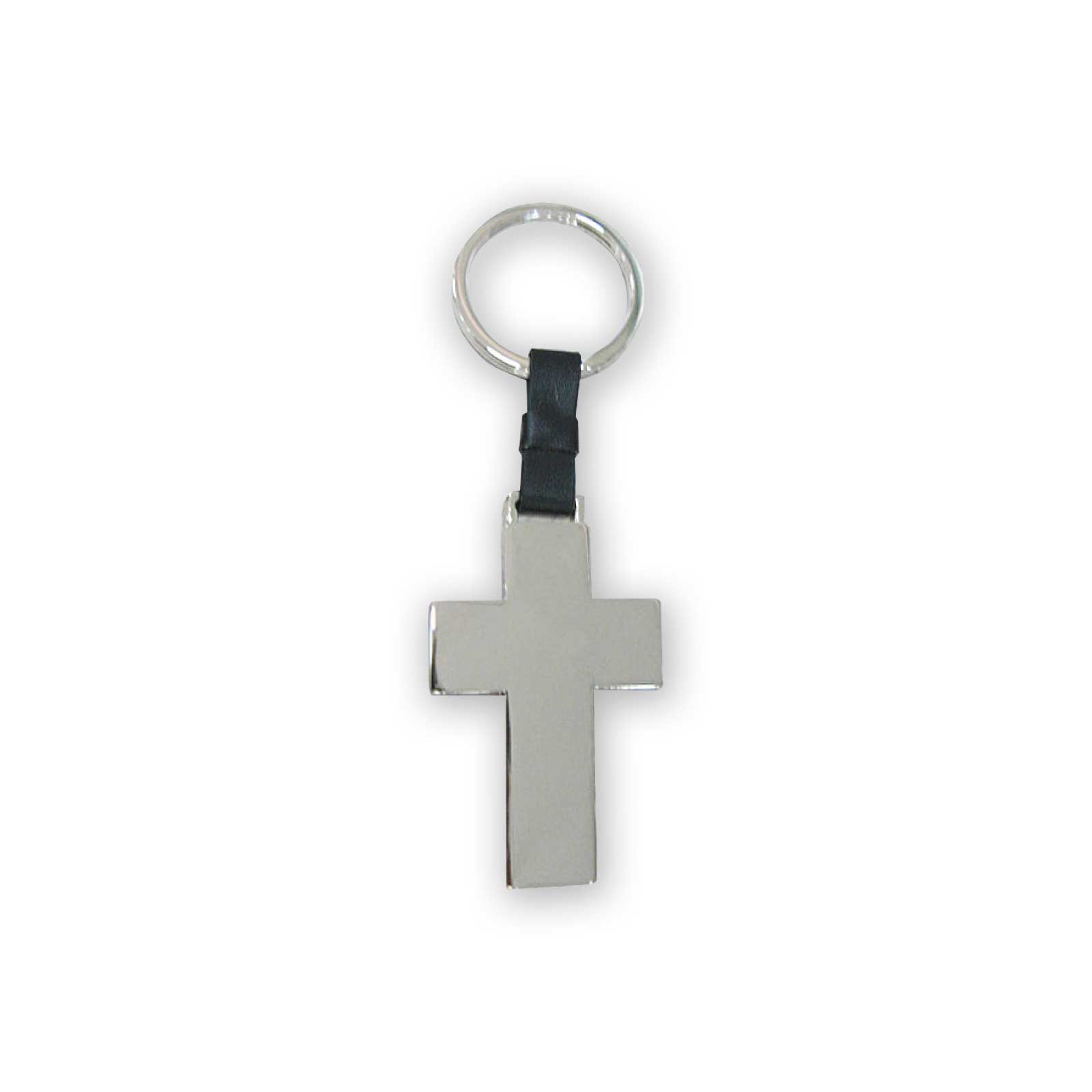 Llavero en forma de Cruz, en acero pulido, unido a la anilla del llavero con un lazo de polipiel, lo servimos en caja de regalo individual, pedido mínimo 25 unidades. Si deseas el llavero personalizado, por favor, añade el producto Impresión láser y sigue las instrucciones para indicarnos el texto/logotipo a grabar. Te enviaremos una prueba de impresión antes de imprimir para tu aprobación.