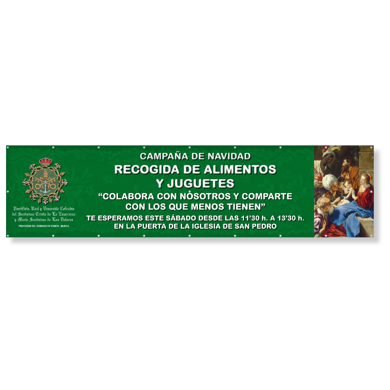 Pancarta lona gran formato, material especial tanto para colocar en exterior como en interior, diseño personalizado con la imagen, texto, logos, mensaje, etc., que desee, ojales metálicos para facilitar su colocación. La impresión la podemos hacer según convenga, si es para poner en horizontal o vertical. Para medidas especiales consultar precio.
