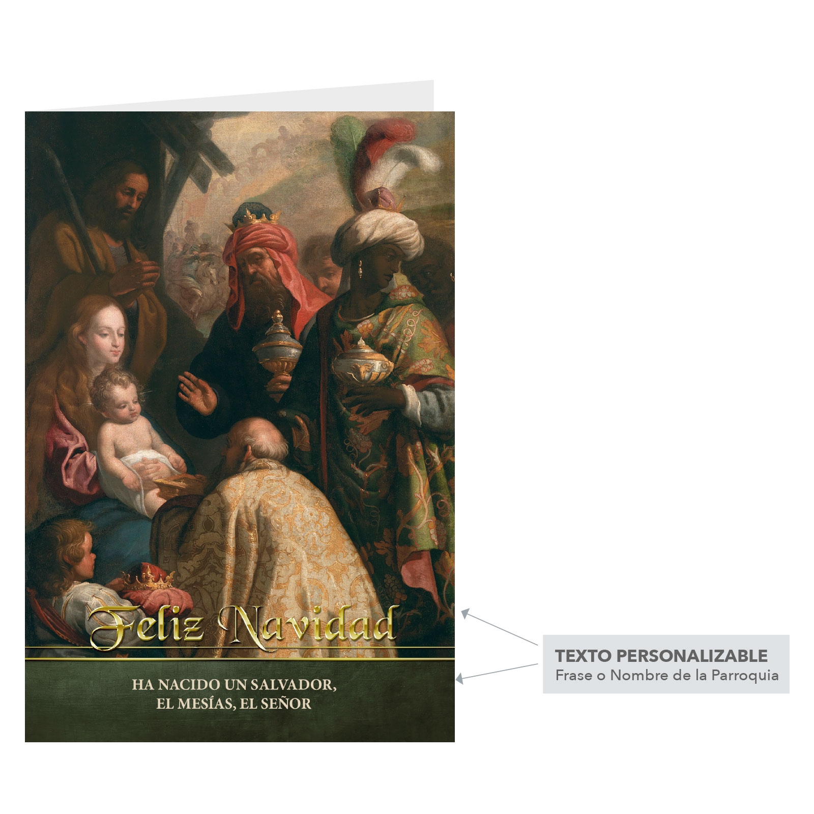 Tarjeta de Navidad personalizable tanto en el exterior como en el interior sin coste adicional. Impresa a todo color en papel de 240 gr. y sobre blanco incluido en el precio.