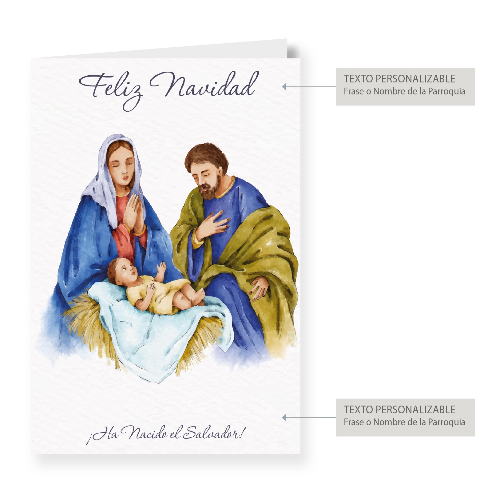 En las imágenes de muestra podrás ver las zonas reservadas para la personalización delantera y trasera. Las tarjetas se sirven con la imagen de muestra, si deseas una felicitación de Navidad con imagen propia puedes verla aquí