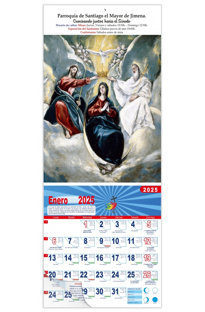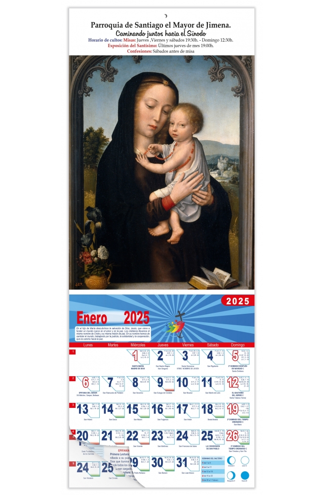 Los calendarios de pared religiosos, un medio de hacer presente nuestra fe en todos los hogares. En nuestra faldilla religiosa especial ponemos toda nuestra experiencia de más de 40 años.